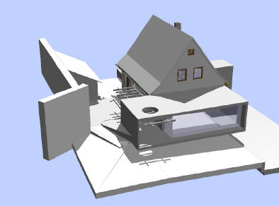 Bestehende Gebäudeteile stehen im direktem Dialog mit neuen Bauelementen oder Erweiterungsbaukörpern oder die Gebäudeteile werden in eine neues Gesamterscheinungsbild eingebunden.